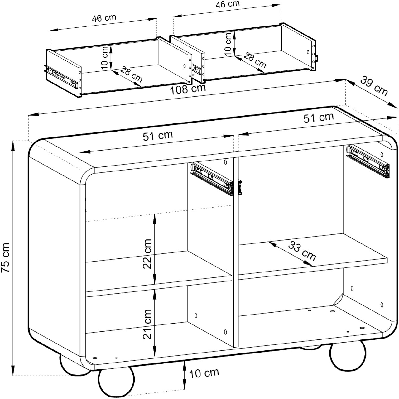 | Plný výsuv zásuvek | Ano | |