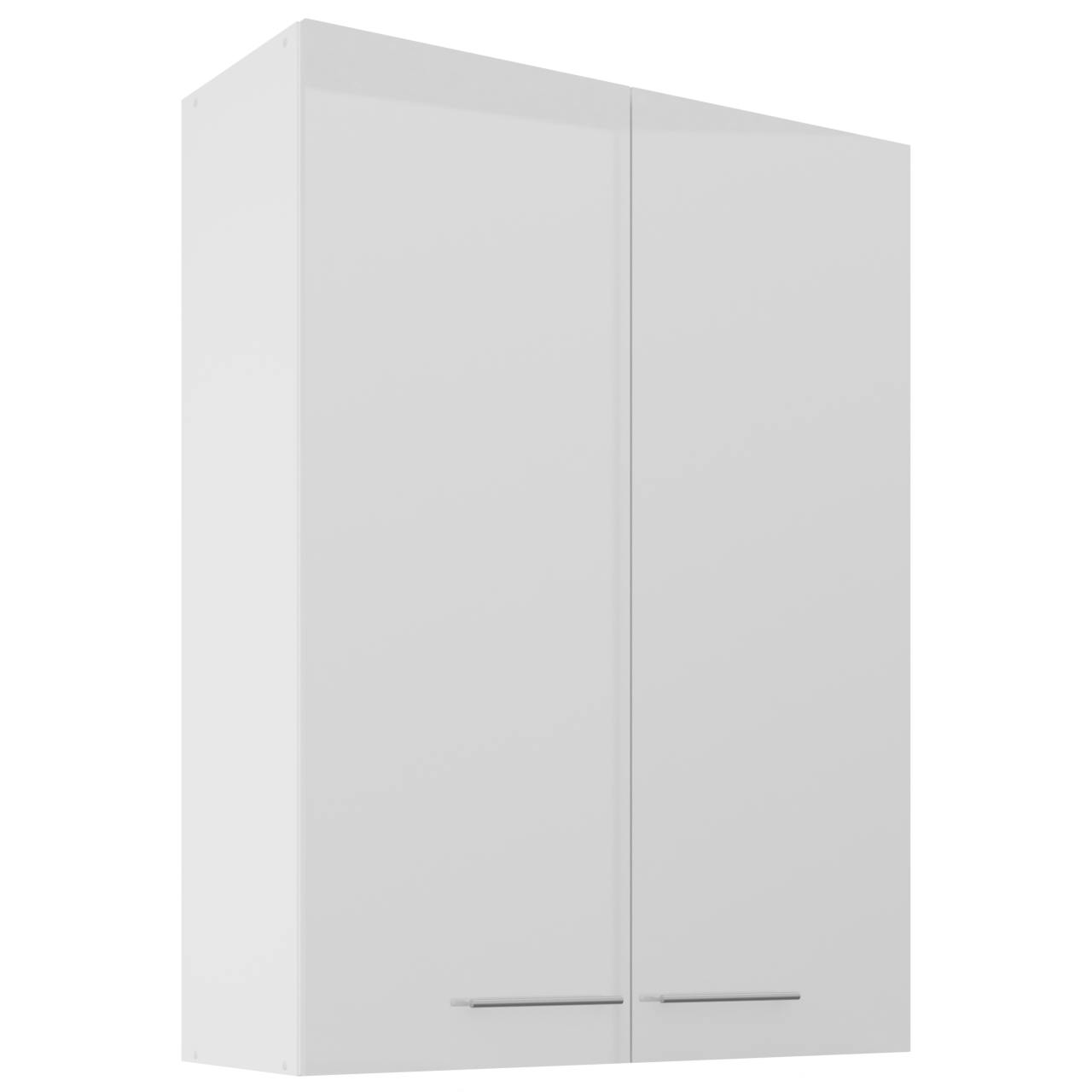 Vnitřek skříňky v bílé barvě. Skříňka má dvě police. |